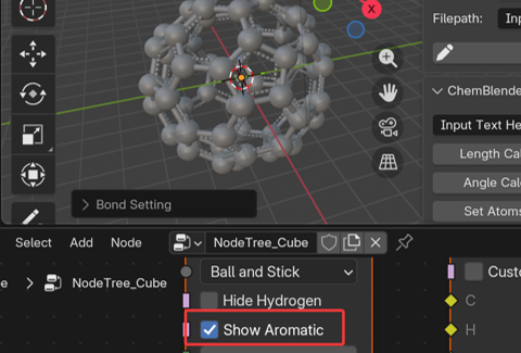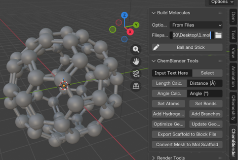 Click “Convert Mesh to Mol Scaffold“ button in ChemBlender Tools panel.